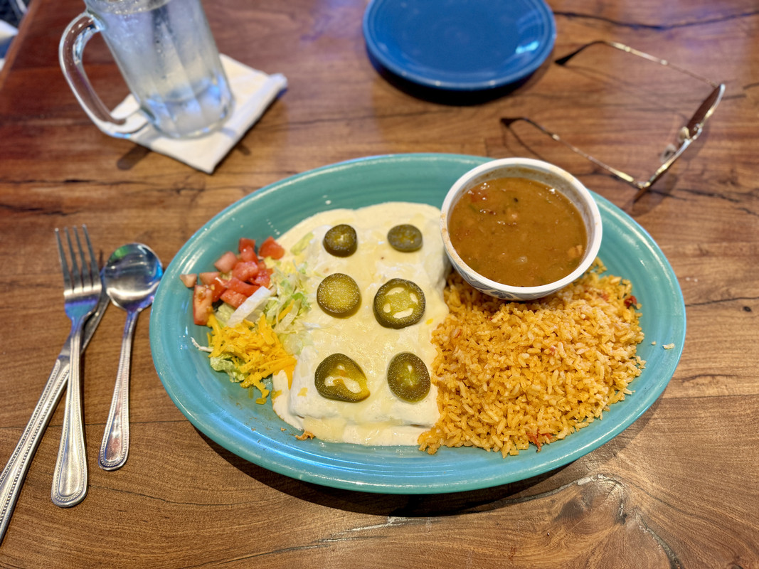 there's Chicken enchiladas under all that sour cream (pause)
