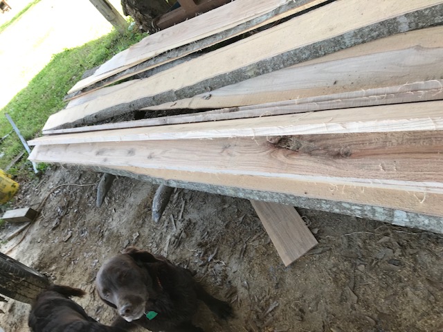 Yes, they are air drying. Had sawed the logs in half. Needed 12' 1x6's and 2 bys for a door to build.