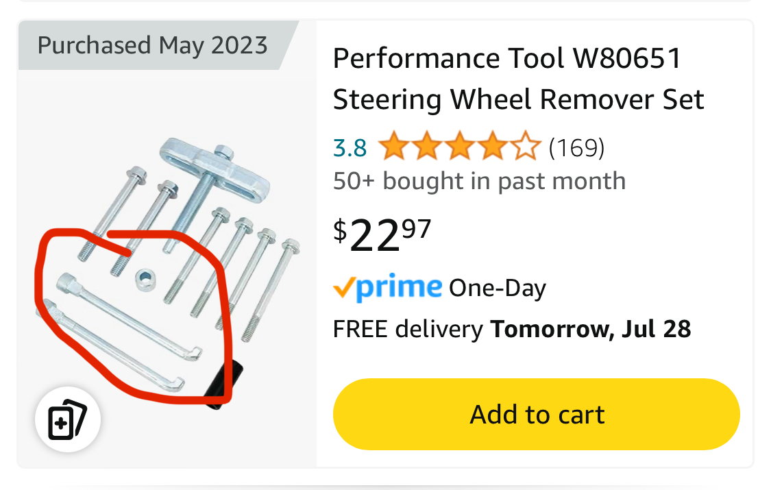 Yes, get the good steel steering wheel pullers. Use small keys to help lodge them in so they don’t pop out once you start the pulling. I bought the cheep set from Amazon and they couldn’t take the pressure and bent. You can rent them for $5 at autozone.