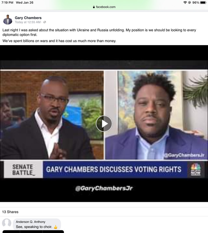 Gravy Chambers "weighing in" on international politics