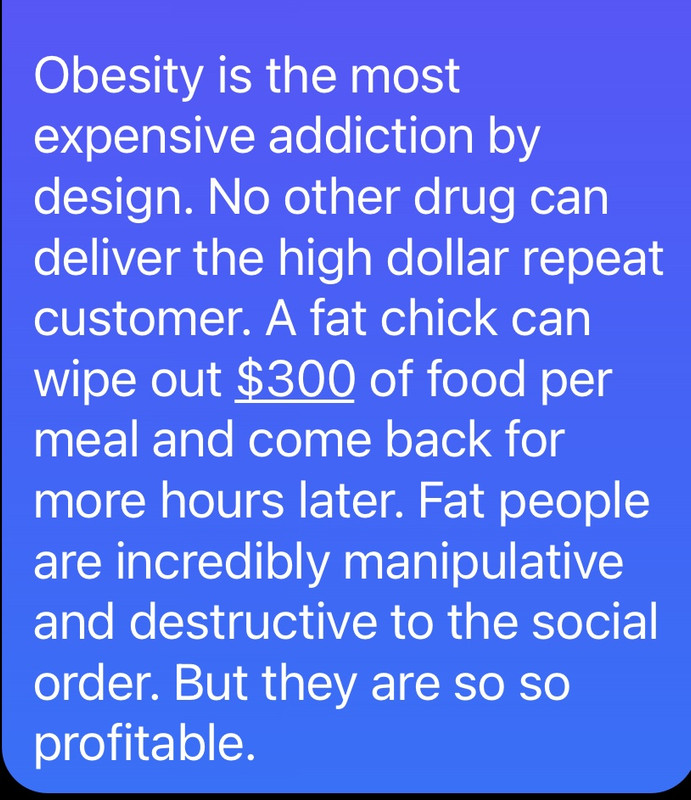 Correct. At least she understands I hate fat people