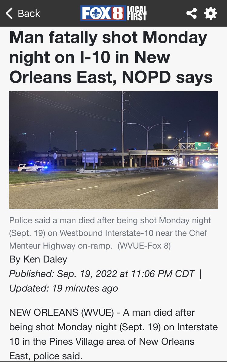 Happened Again - Another Person Shot and Killed on I-10 in New Orleans