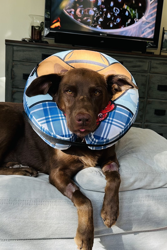 Charlotte had some stitches so we got this inflatable ring to avoid the cone of destruction