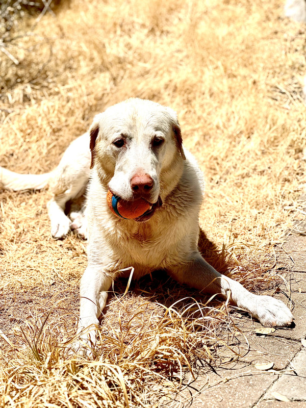 Samson in our grass, no rain since May
