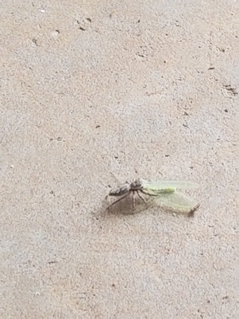 Or, I guess you could say they end here, as a jumping spider's dinner (My terrible pic):