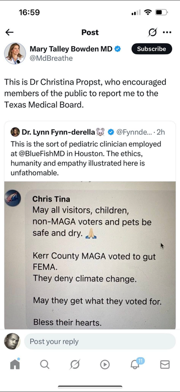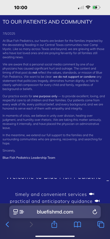 There’s a pediatric doctor here in Houston that’s probably fricked for saying terrible shite about the flood.