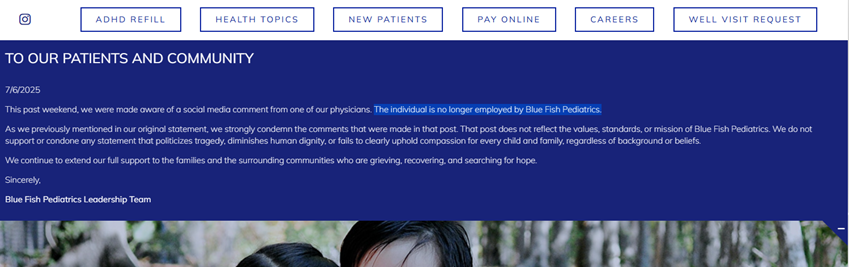 I think the head of the Texas Medical Board put out a statement saying they’re investigating it and reposted what her employers posted