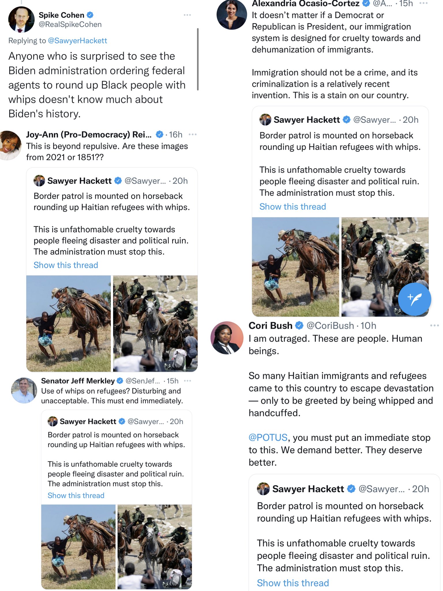 What's really scary is that yesterday social media accused border patrol of using whips on people. It was reigns from the horse and ropes but that didn't stop it from spreading like crazy and even USA Today, NBC, etc spread it.