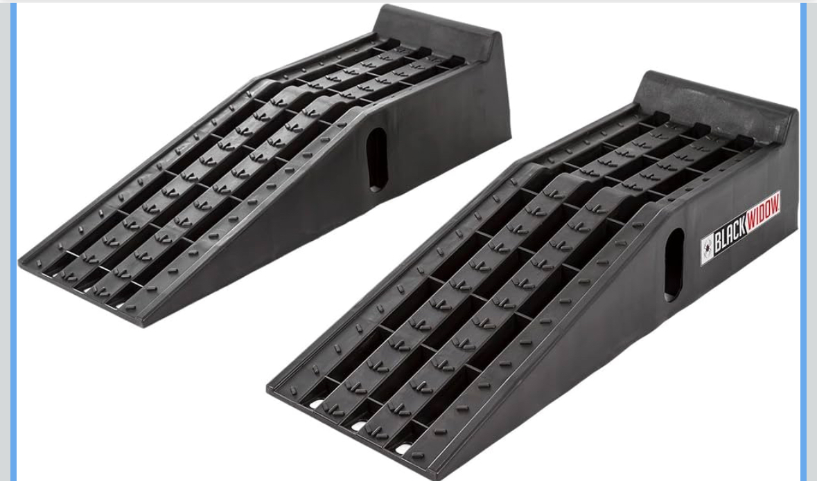 If you don’t want to purchase drive on ramps, get a 4 by 4 wooden post or a 6 by 6 and cut a block about a foot long. Put block on top of your small jack this will give you an extra 4-6 inches of lift
