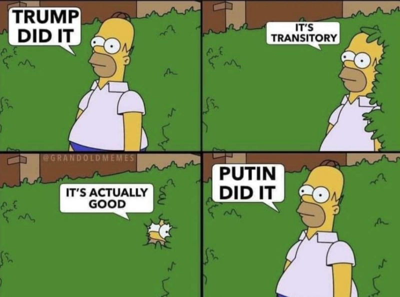 You voted for a president who passed a total of over $2 trillion in relief funds, but yeah it's only Biden's fault.