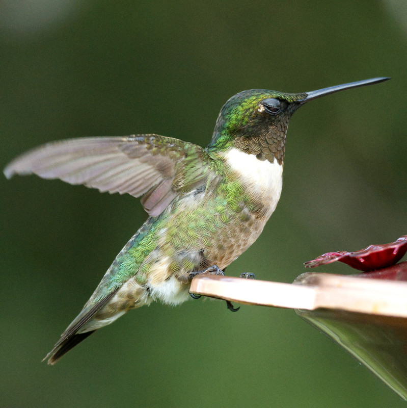 Fun fact: hummingbird feathers are translucent. The colors we see is light being bounced around inside them, like a prism