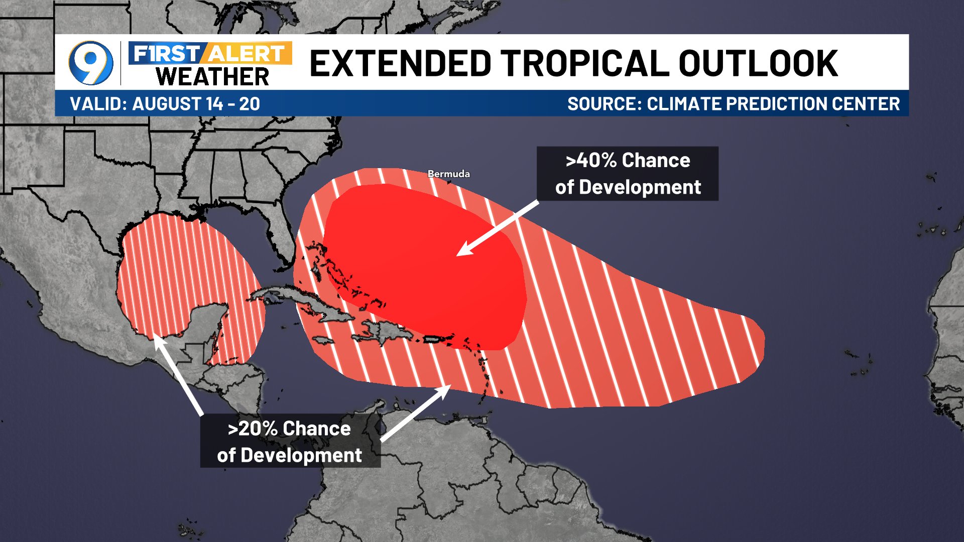 *No immediate concerns* for us but the Climate Prediction Center says the Atlantic looks primed to potentially produce multiple systems in the mid-latter part of August.
