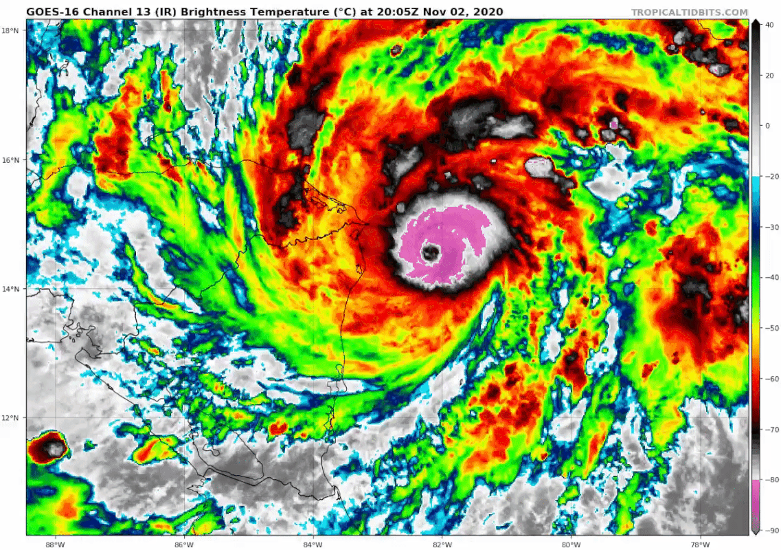 Cold dark gray ring. Warming eye. Absolute unit of a hurricane. How's that for in-depth Dvorak.