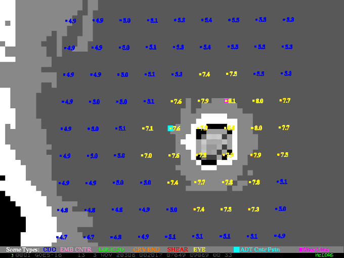 Jack Sillin is pulling out the Dvorak. He says Eta is topped out a a T7.9 on Raw Satellite Intensity.