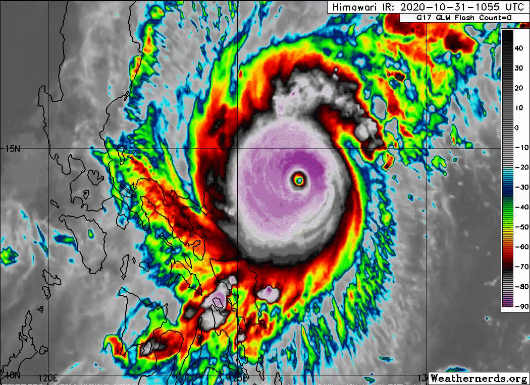 #Goni probably had one of the smoothest EWRC that I can remember in the last few years and is once again restrengthening prior to landfall. Residents in the #Philippines need to heed warnings and take shelter as this is a very dangerous typhoon with winds >160mph.