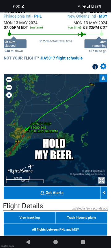 It's looking like the worst is about to pass over MSY now so there may be a chance of getting some planes in within the next 20-30 minutes. Tampa is going north now then will go west to avoid the line. Newark is probably headed out where San Diego has been circling. I would absolutely hate to be on the CRJ700 from Philly in this shite AA 5017