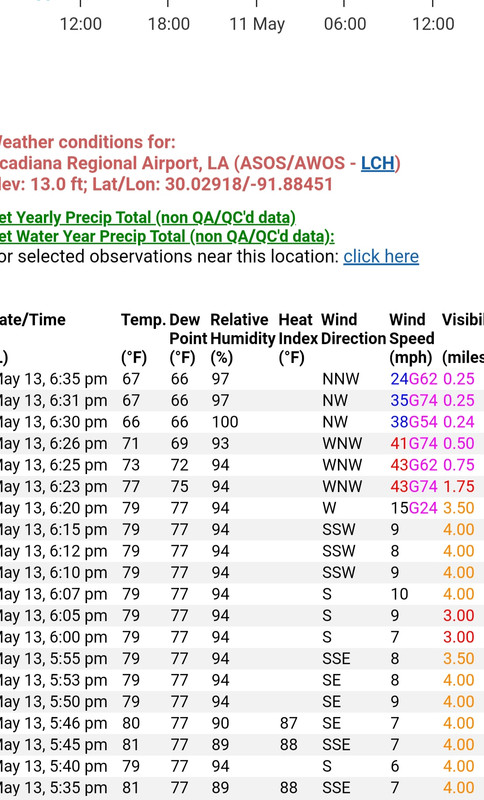 74mph gust at the Acadiana airport.