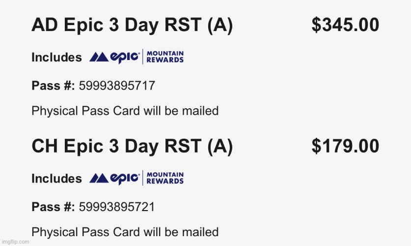 $179 each for the 2 older kids for 3 days