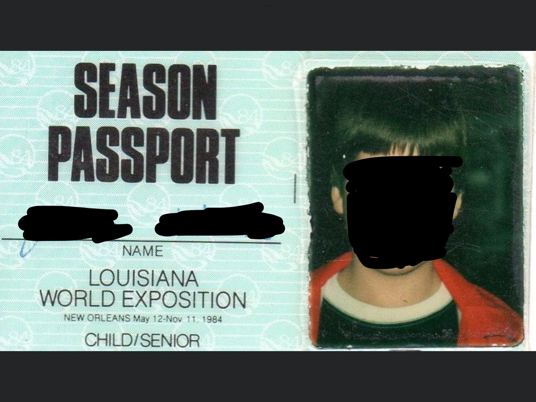 For those here who are not old timers like myself- the City of New Orleans once hosted something called the “World’s Fair”….. to get a season pass , you would venture to a place called “Maison Blanche” (ain’t dere no more), pay a few bucks, get ur picture snapped and you could go to The Fair as many times as you wanted.. it was quite a spectacle, and the absolute best time to be a kid in NOLA in the history of mankind .