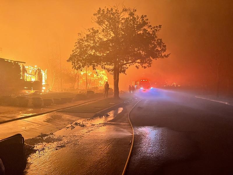 The first responders on scene began home and property defense immediately. No sooner could they get established on a property than another call of homes being threatened or involved would come in. Calls and radio traffic were constant and the chaotic mass evac effort made responding nearly impossible at times.
