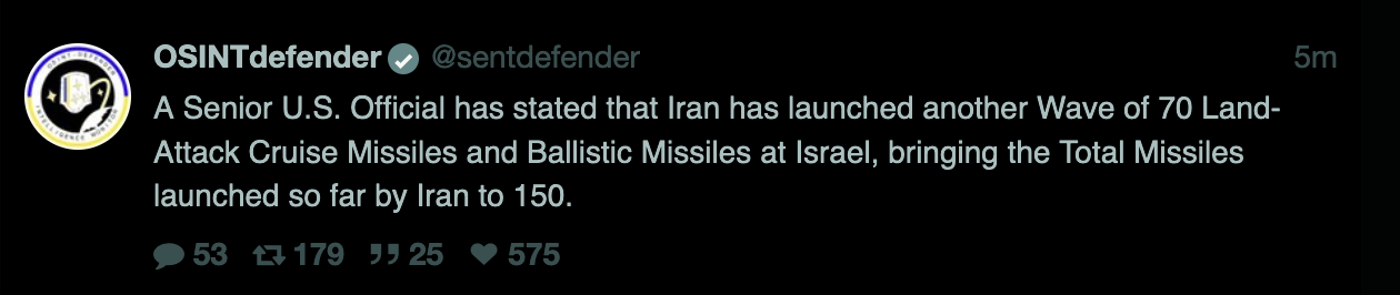 US official to ABC: Iran fires another 70 ballistic missiles at Israel, following earlier barrage of 80 missiles. via @N12News