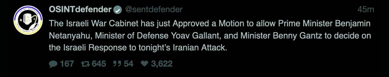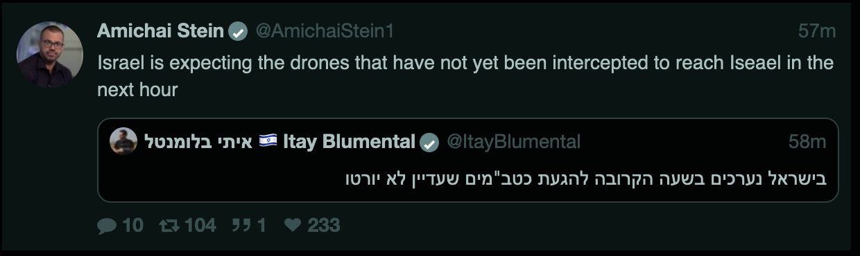 re: Iranian attack against Israel has begun