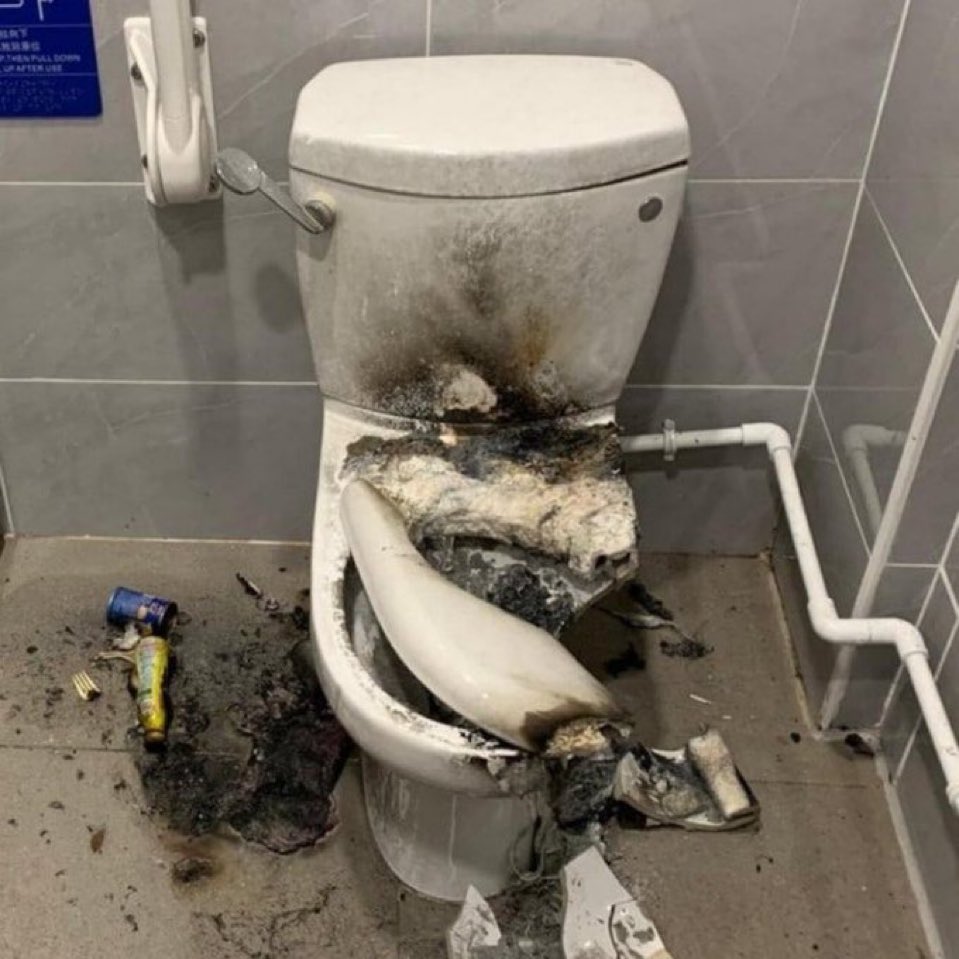 Was the guy eating lunch on the shitter? There are remnants of a couple cans and a plastic fork to the left.