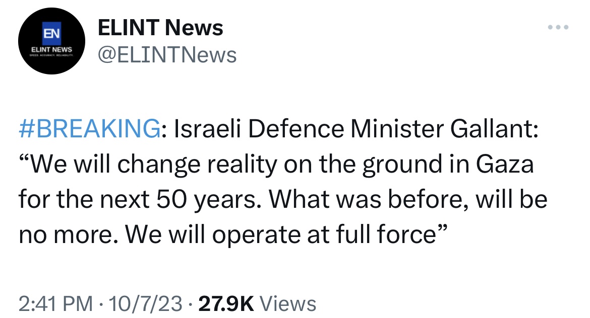 "We will change reality on the ground in Gaza for the next 50 years. What was before, will be