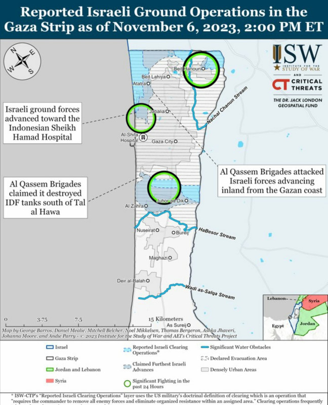 Israeli ground forces advanced toward the Sheikh Hamad Hospital along the northwestern Gazan coast and toward Tal al Hawa southwest of #Gaza City on November 6. Israeli military spokesman Lieutenant Colonel Richard Hecht said the IDF is slowly closing in on Gaza City.