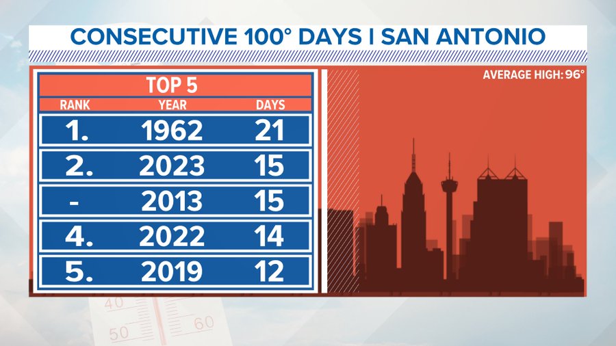 In 2012 San Antonio had over 70 straight days of 100 degree heat.