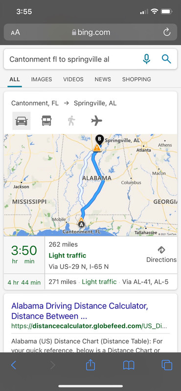 We have recently made two trips up to Springville Al - both times, it seems we drive less time to get home than traveling up.