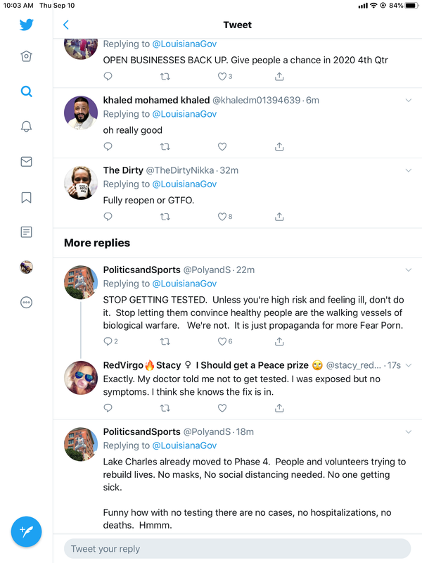 With the election 55 days away, LSU tailgating being banned and the heat from the Woodward interview coming down on Trump, I'd be shocked if we moved out of Phase 2 tomorrow. JBE's gonna tow the party line on this one.