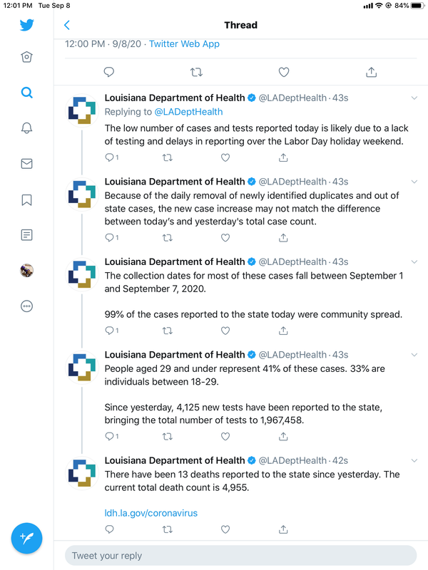 I called it, LDH with the lack of testing the week of the hurricane & Labor Day holiday excuses