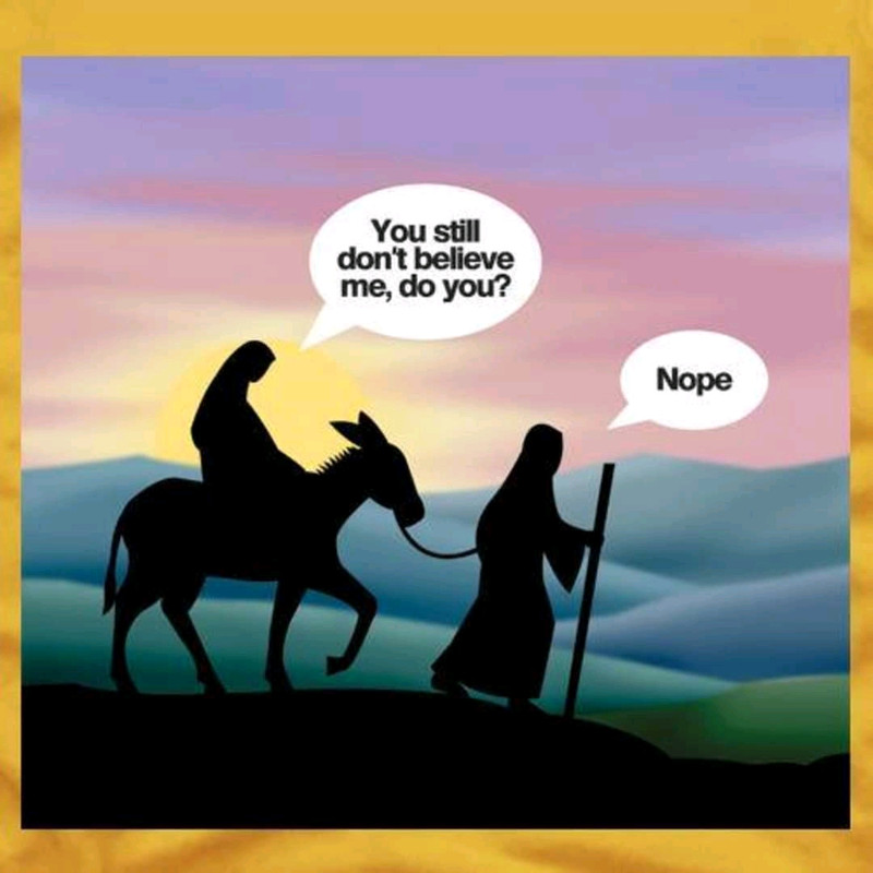 "Joseph, I think it's time. See, I told you it was. Would you wipe out that manger and line it with some hay, then hand me those swaddling cloths. What? Visitors already? Did they bring any Diapers? No? Not very wise if you ask me. Men - what good are they? Oy Vey!"