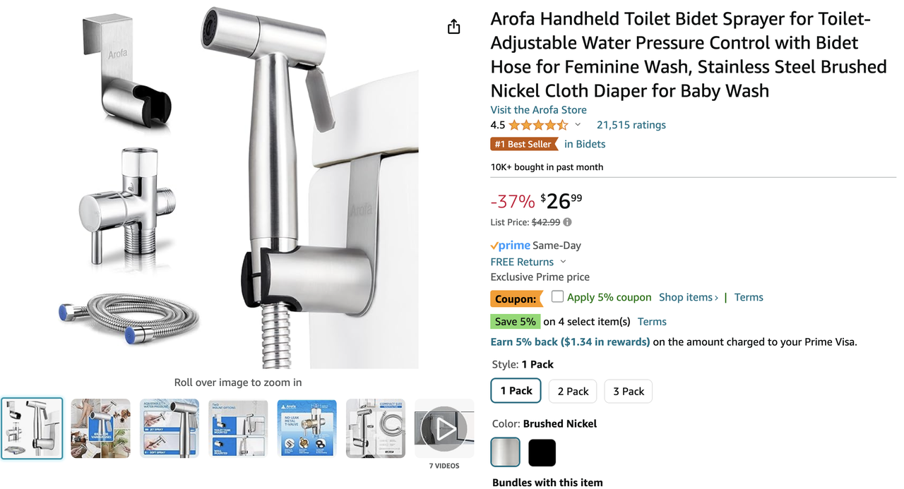 I recommend a combo of Bum Gun and toilet-seat bidet. It’s harder for the ladies to achieve full cleanliness with just the bidet.