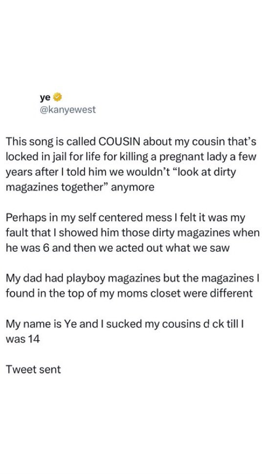 I laughed out loud at the “I’m Ye and I sucked my cousin’s dick til I was 14” part