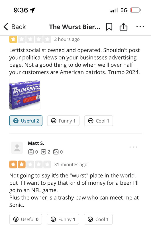 I went there a couple months ago when my son Braxxton was down there for a travel ball tournament. It was an average beergarten. Would possibly return if I had to. That was at least until he made it be known that he supports mental illness, high gas prices and children mutilating themselves. He also turns a blind eye to the inner cities being a war zone. No buenI, imho