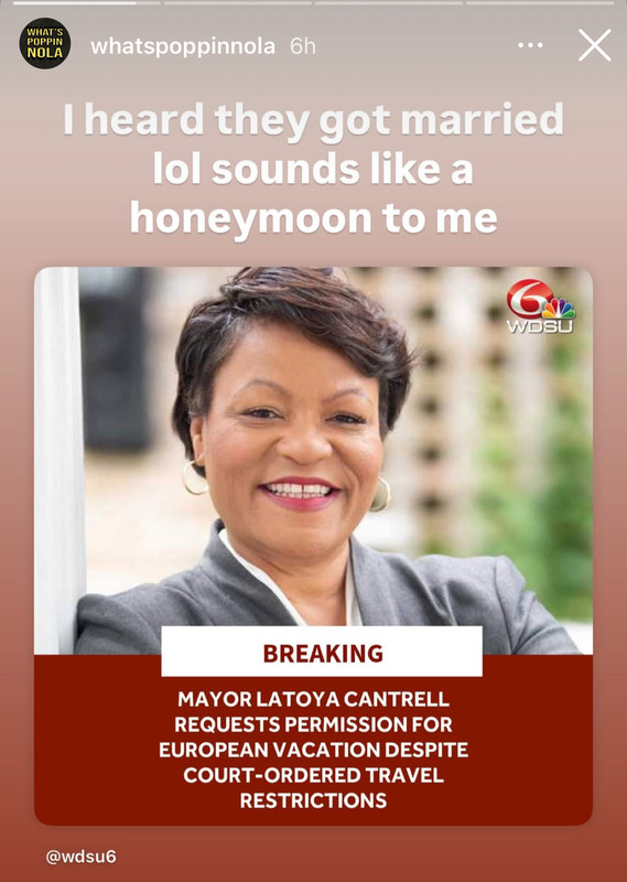 re: Latoya Cantrell asked the judge to allow her to vacation in Iceland....