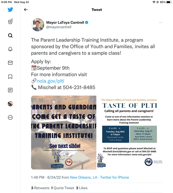 re: LaToya Cantrell holding news conference Wednesday night @ Allie Mae Center