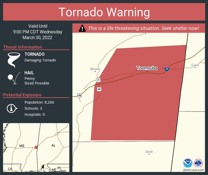 Confirmed tornado near Janice MS and our local meteorologist keeps telling Janice to take cover, like he’s talking to one woman who is in the path