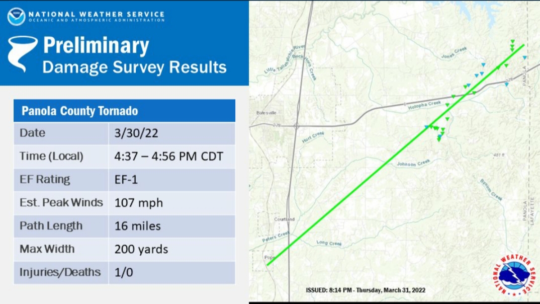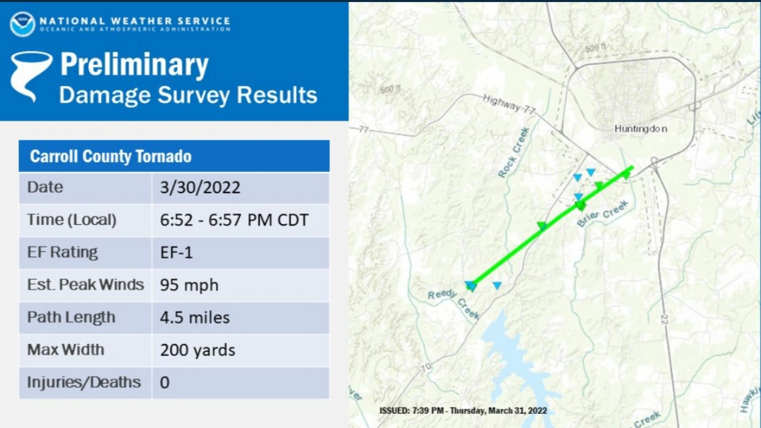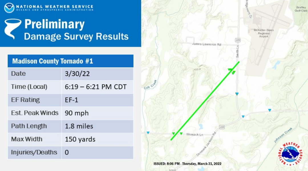 ...NWS Damage Survey for March 30th, 2022 Severe Weather... .Update...