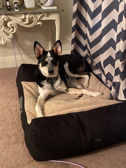 Nah that’s Rocket’s bed he’s lounging on that’s grey. The shag thing that’s lighter in a new huge dog blanket that covers most of our bed. Archer’s hair does match the couch, so that’s better than the other.??