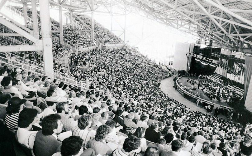 the amphitheater was always meant to be temporary…it was not designed for a long term lifespan. After the fair, there was some discussion about keeping it but it was determined to not be feasible, and anyway the site was already designated to be part of the new convention center (which is the lasting legacy of the worlds fair)