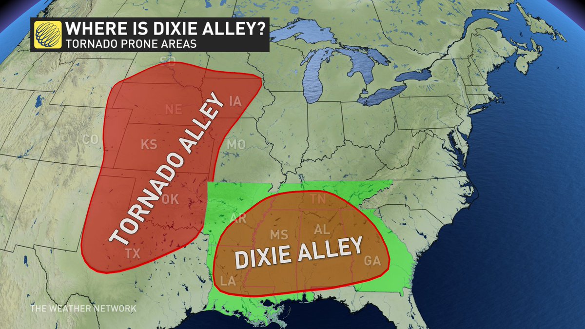 Here’s a map of traditional Tornado Alley and Dixie Alley for reference: