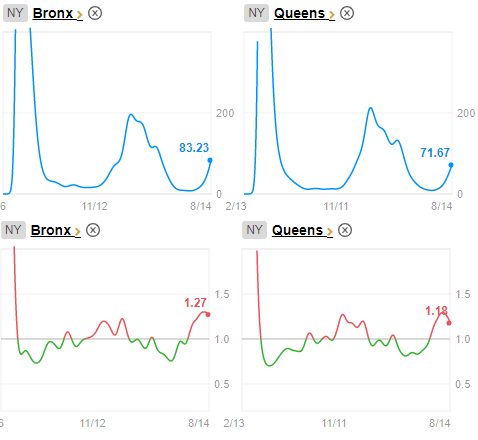 So that trend would support a drop in hospitalizations in LA of around 8/24 since LA’s Rt fell to 1.0 on 8/10.