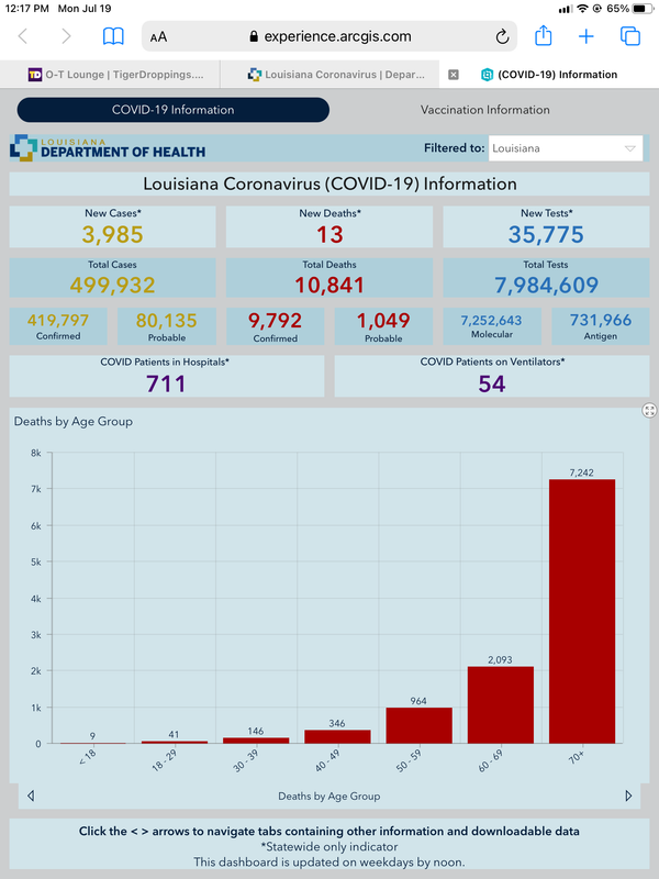 Jeff Asher @Crimealytics The number of people in the hospital with COVID in Louisiana increased to 711 including +99 on Sunday. That's +73% week on week and the largest single one day increase since April 6, 2020. We began July at 259.
