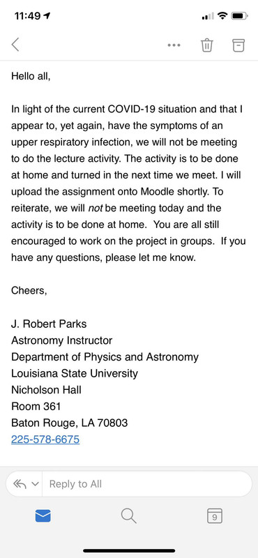 So this dumbass has been exhibiting symptoms while near all his students and stays home but still encourages his class to meet in groups to work on an assignment?