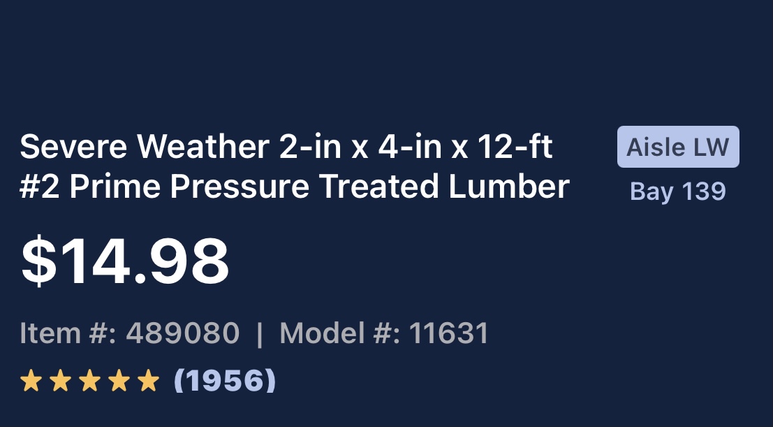 This was the price of a 4x4x16 treated post at Lowe’s on December 24th: