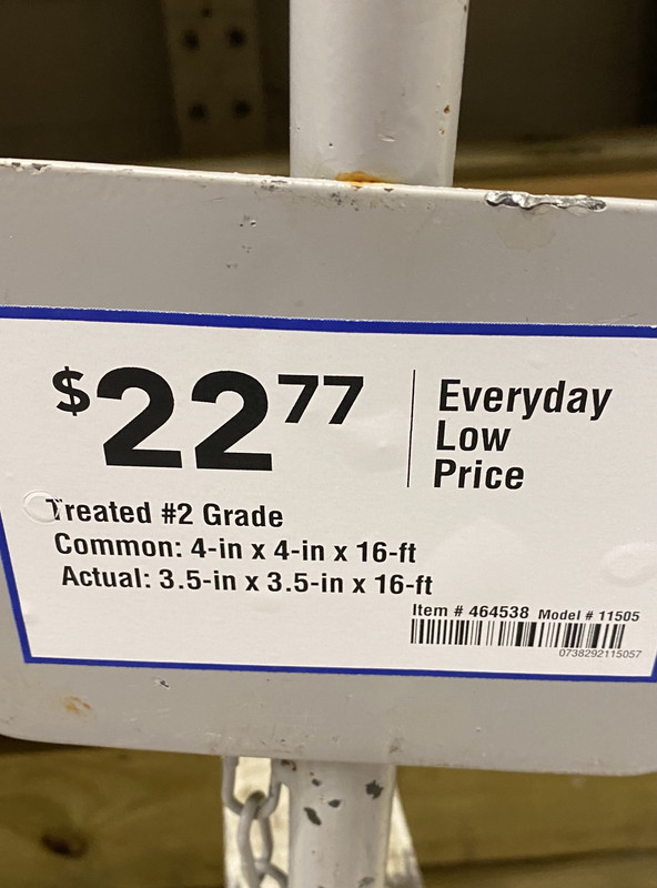 This was the price of a 4x4x16 treated post at Lowe’s on December 24th: