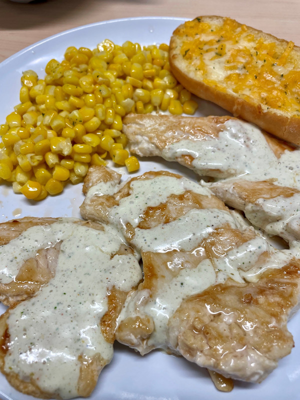 Finishing up the leftover chicken and pork from the weekend. Rain and wind ahead of the cold front this afternoon.